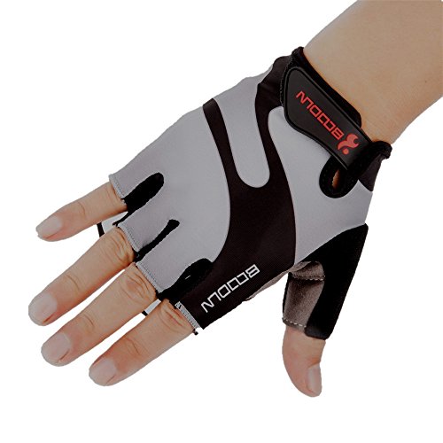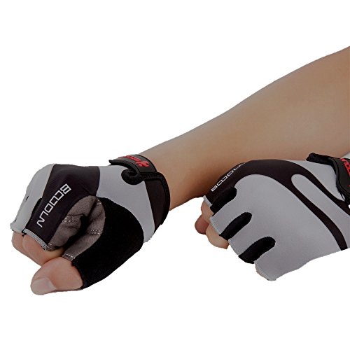 BOODUN Cycling Gloves with Shock-absorbing Foam Pad Breathable Half Finger Bicycle Riding Gloves Bike Gloves B-001, Grey, Small