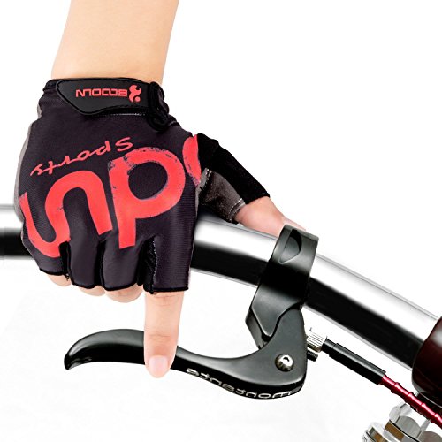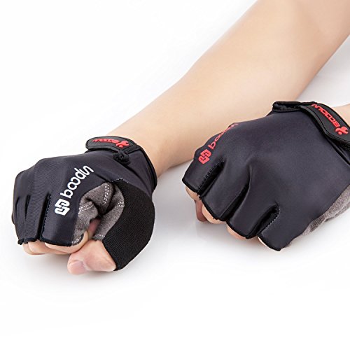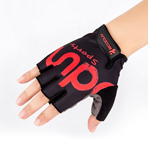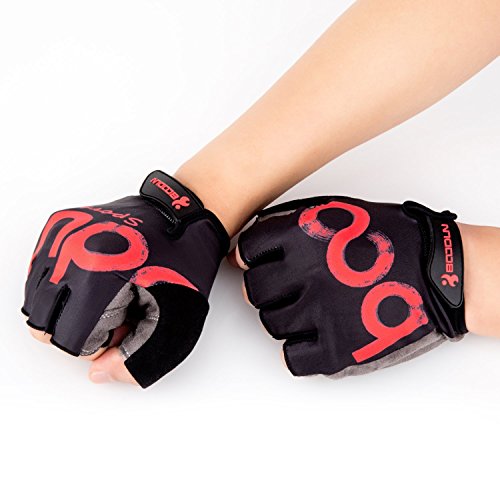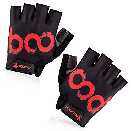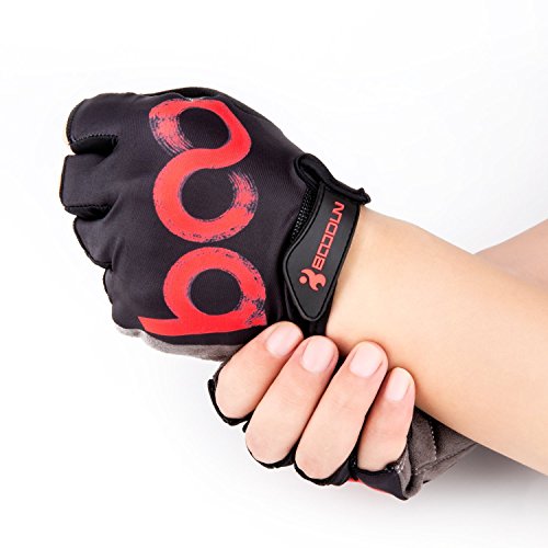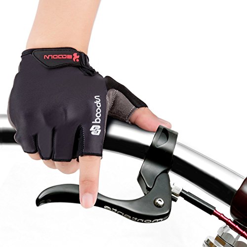 BOODUN Cycling Gloves with Shock-absorbing Foam Pad Breathable Half Finger Bicycle Riding Gloves Bike Gloves B-001, Black with Red Logo, Large