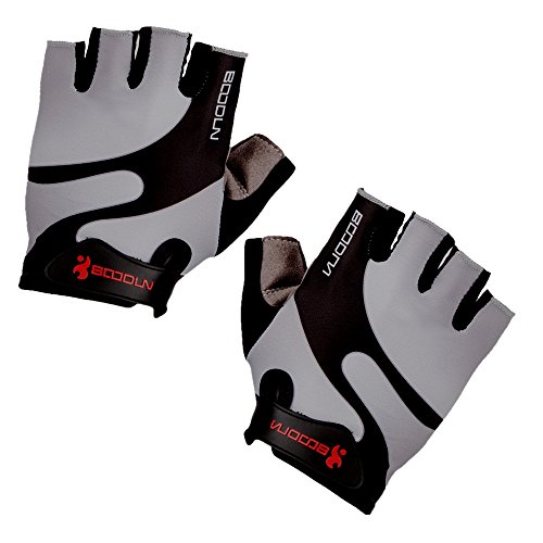 BOODUN B-001 Cycling Half Finger Gloves with Shock-Absorbing Foam Pad, Grey, Large