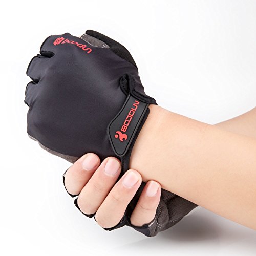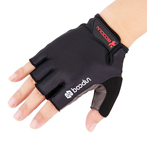 BOODUN Cycling Gloves with Shock-absorbing Foam Pad Breathable Half Finger Bicycle Riding Gloves Bike Gloves B-001, Black with Red Logo, Medium