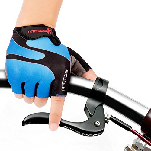 BOODUN Cycling Gloves with Shock-absorbing Foam Pad Breathable Half Finger Bicycle Riding Gloves Bike Gloves B-001, Blue, Large
