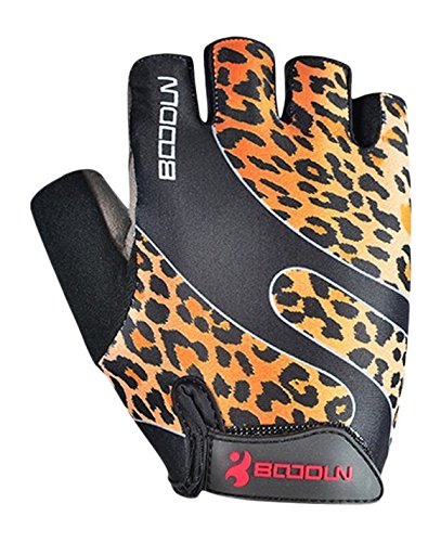 BOODUN Cycling Gloves with Shock-Absorbing Foam Pad Breathable Half Finger Bicycle Riding Gloves Bike Gloves B-001, Leopard Print, Small