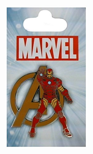 - This pin features Iron Man, standing forcefully in front of the Avengers iconic symbol