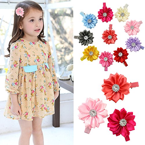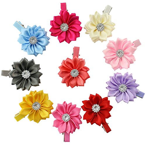 Boutique Hair Clips with Grosgrain Ribbon Bows or Flowers for Baby Girls,Toddlers and Teens