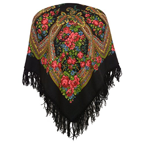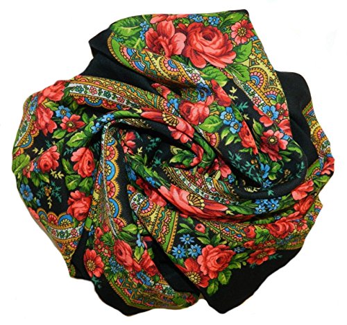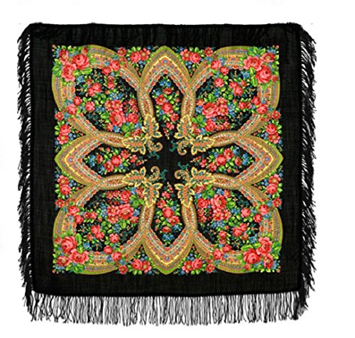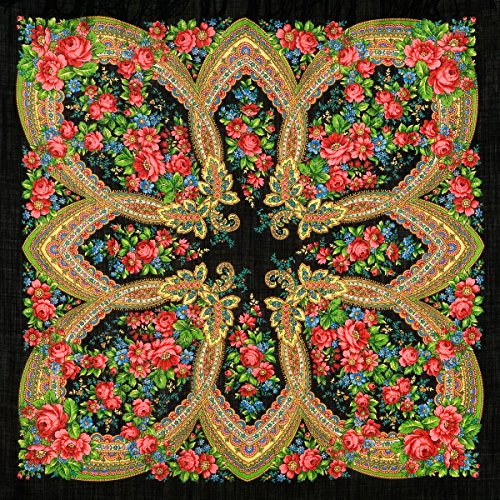 Product DescriptionPavlovo Posad Russian Shawl 685-18, Wrap, Scarf, Pashmina, Head Scarf, Neckerchief Black Wool0