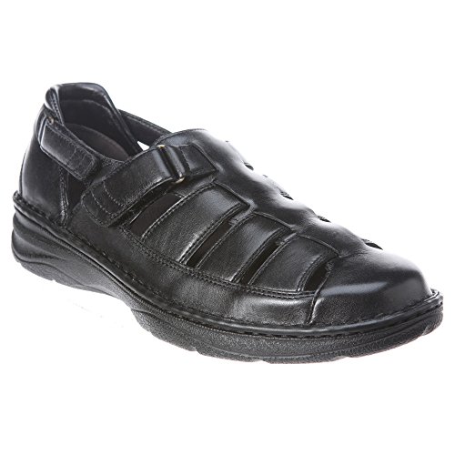 Amazon.com Product Description Made for the stylish man on the move, this Springfield fisherman sandal from Drew combines good looks with functionality. It has a semi-polished leather upper, attractive tonal welt stitching, and a thick shock-absorbing rubber outsole. Of course, comfort will never be a question--the removable insole, padded heel cup, and breathable leather linings have all of that covered.
