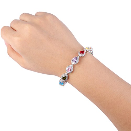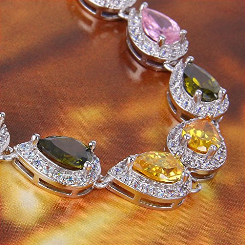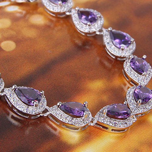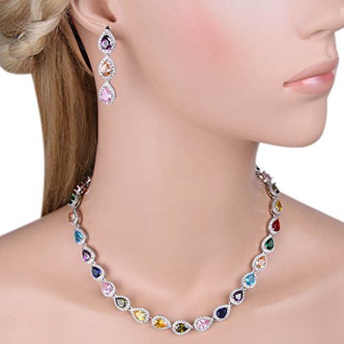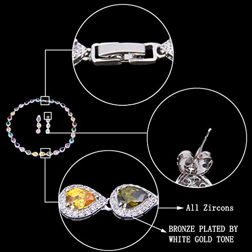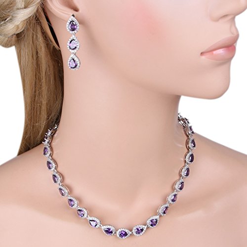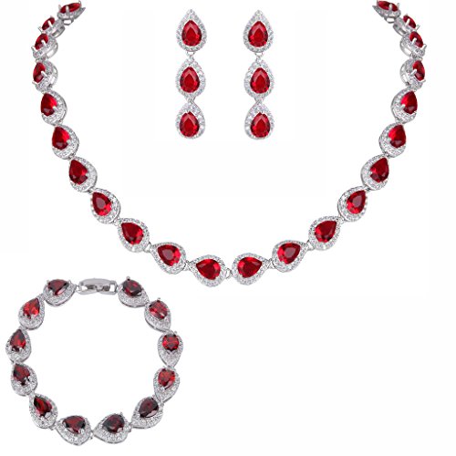 -. Title : EVER FAITH® Silver-Tone CZ Birthstone Elegant Tear Drop Necklace Earrings Bracelet Set