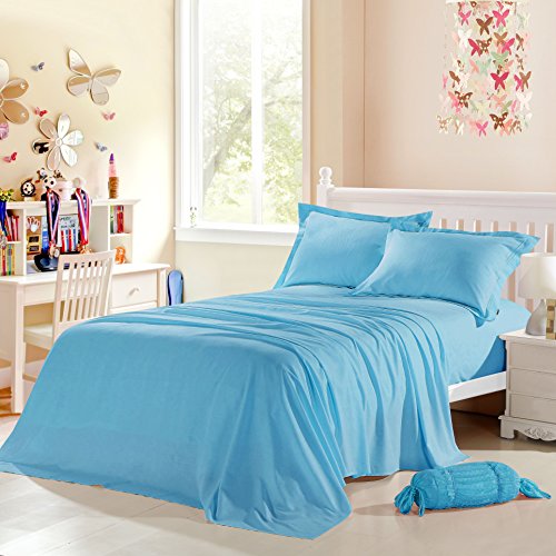 LOVO Simple Life Brushed Microfiber 4-Piece Sheet Set Deep Pocket Blue Queen size