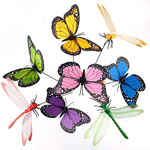 - Each butterfly is about 4.7" wingspan with 10" tall stick. Each dragonfly is about 5.5” wingspan with 10” tall stick