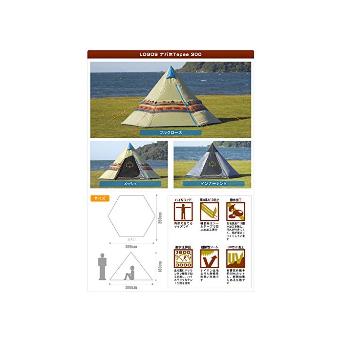 LOGOS logos 텐트 Tepee 나바호 세트 비의 침 봐 오 보 방지 UV컷 가공 발수 가공 페스 투어링(touring)용