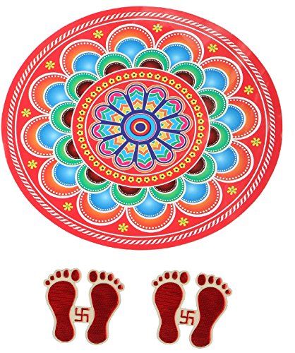 Devika: Decorate your door,Make home auspicious,Rangoli Floor Decorations Round Shape with 2 sets of Lakshmi charan (pagla) Traditional Home Décor priceless gifts
