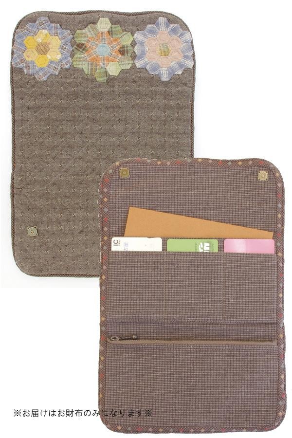 | 六角つなぎ(ヘキサゴン)がカラフルなお花に変身!縁取りのパイピング使いがオシャレなお財布が作れるキットです。通帳やカードが入り、ファスナーの付いたポケットも付いています。やわらかな陽射しの中にいるような優しい色合いは自然と心がなごみます。 |