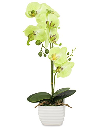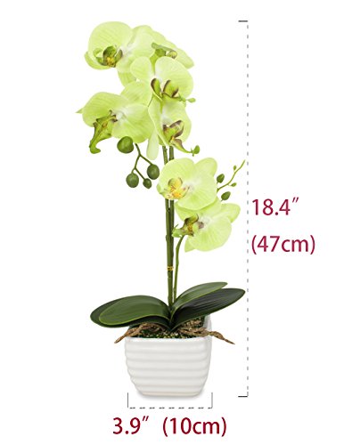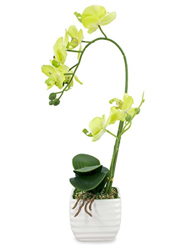 Dahlia Realistic Silk Orchid Artificial Flower Arrangement with White Ceramic Pot, Yellow