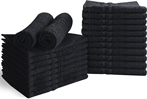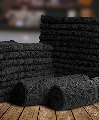 Cotton Bleach Proof Salon Towels (24-Pack, Black,16x27 inches) - Bleach Safe Gym Hand Towel by Utopia Towel