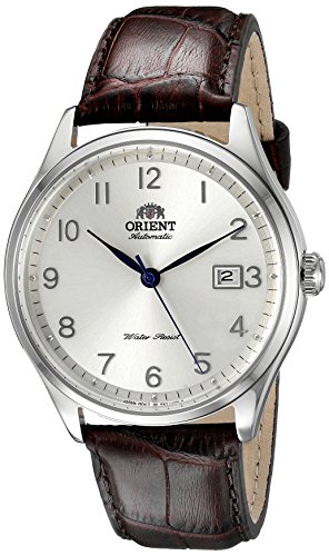 -. Binding : Watch -. Brand : Orient -. Department : mens -. EAN : 0810459023334 -. Feature : Round watch with sunray dial featuring date window and fluted crown / 43 mm stainless steel case with synthetic-sapphire dial window / Japanese automatic movement with analog display / Leather band with buckle closure / Water resistant to 50 m (165 ft): In general, suitable for short periods of recreational swimming, but not diving or snorkeling -. Label : Orient -. Manufacturer : Orient -. Model : FER2J004S0 -. MPN : FER2J004S0 -. PartNumber : FER2J004S0 -. ProductGroup : Watch -. ProductTypeName : WATCH -. Publisher : Orient -. Studio : Orient -. Title : Orient Men's FER2J004S0 Duke Analog Display Japanese Automatic Brown Watch -. UPC : 810459023334