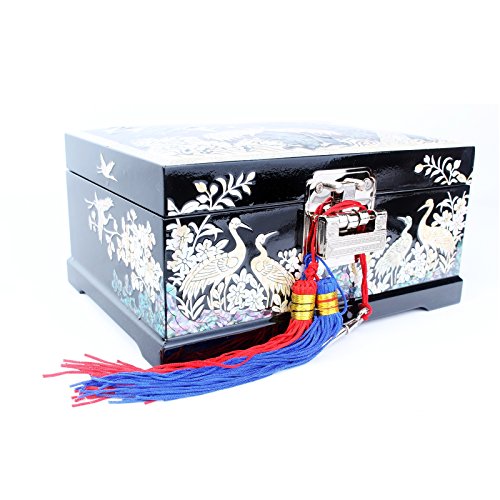 -. Feature : Material is sort of lacquer ware inlaid with mother of pearl / Music Box Operated by Machine Work " Korea Traditional Folk Song" Arirang / Traditionally, this Antique Jewelry box was used in high class society in Korea / Pattern is Crane & Pine Tree / This is good gift set for valuable person birthday, graduation, thanksgiving, Christmas, father mother's day, New Year's Day, wedding, valentine, and anniversary.