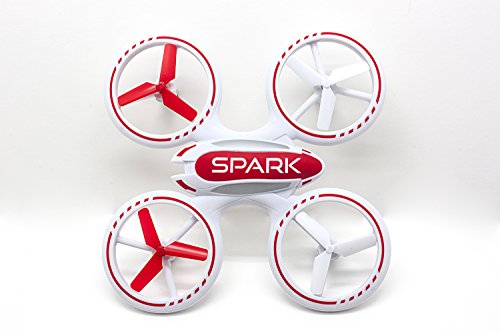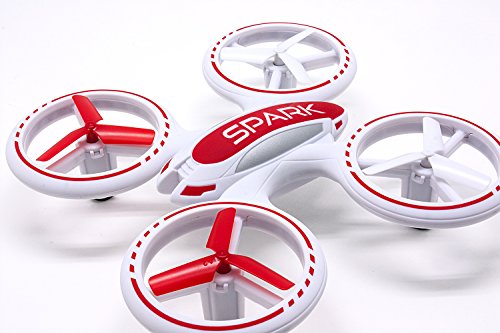 Light up the Sky! The Quadrone Spark is designed for speed and durability. A sleek aerodynamic design and a rubber-soft texture add to this drone's flying experience. With an all-encompassing propeller body protection that glows all around with multiple LEDs, this small drone lets you command the sky day or night! With a 200 feet flight distance its the perfect pass time flying activity.Feature