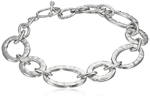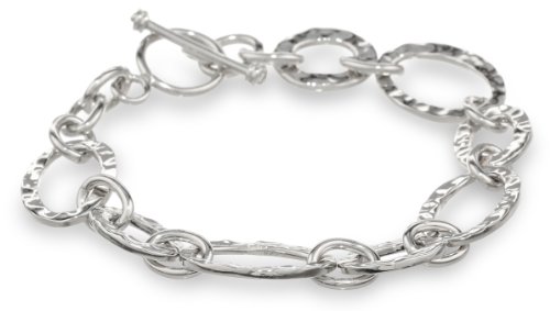 -. Feature : Sterling silver bracelet crafted from links in polished and hammered finishes / Toggle closure / Imported