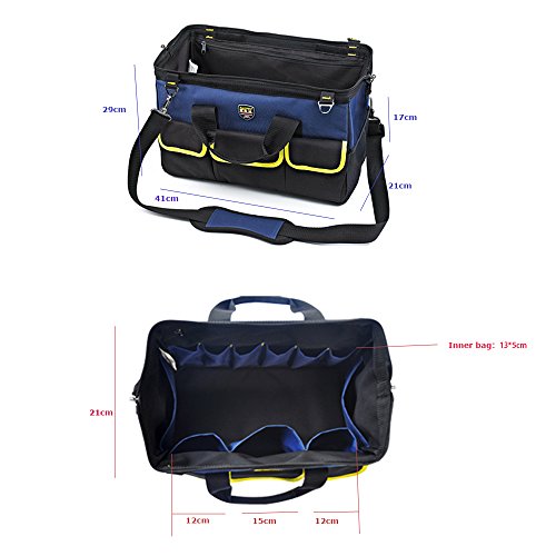 - FUNCTIONAL - put hardware tools, garden tools, maintenance tools, electric tools, car kit, electric tools, telecommunication tools and so on. Shoulder strap is adjustable, Fit both regular and plus-size person.