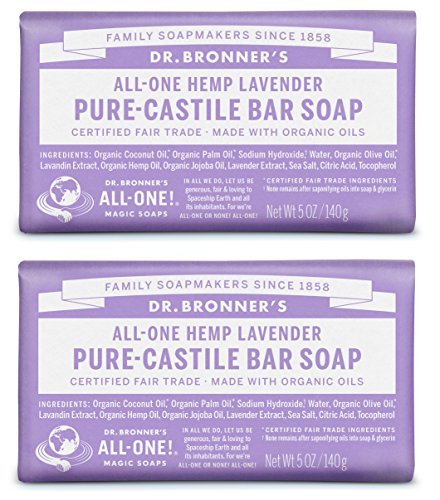 LAVENDER. Scented with pure lavender and lavandin oils to calm the mind and soothe the body! Dr. Bronner's Lavender Bar Soap is made with certified fair trade ingredients and organic hemp oil for a soft, smooth lather that won't dry your skin