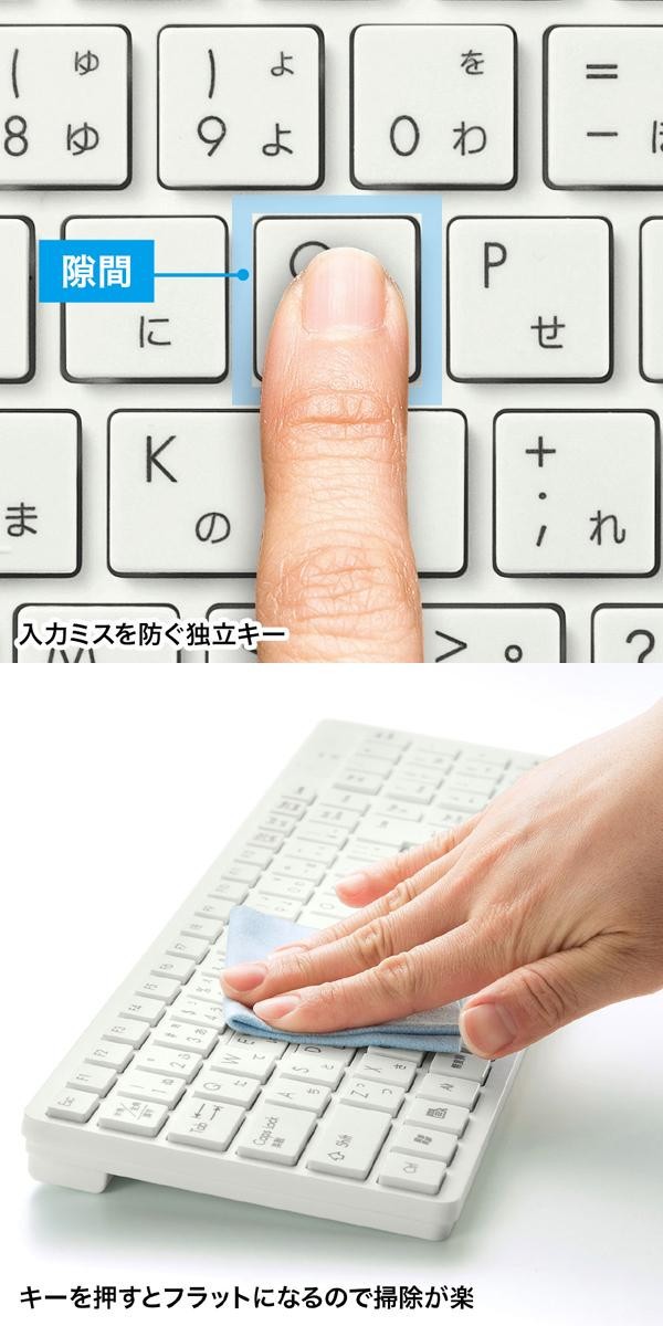 | 誤入力を減らすアイソレーションタイプのワイヤレスキーボード。 |