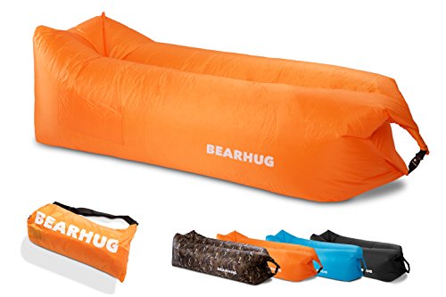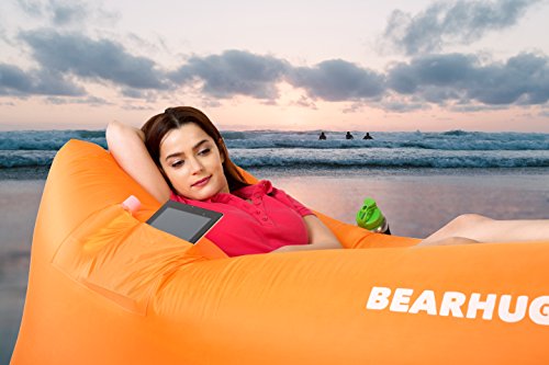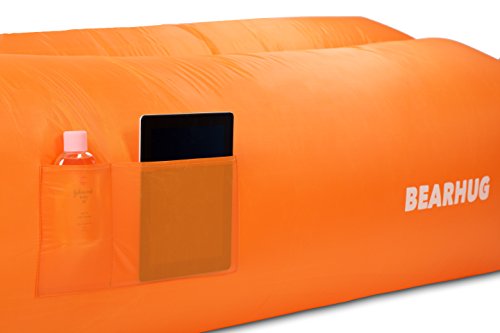 Studio : KaraTech Publisher : KaraTech Product Description INFLATABLE LOUNGE SACK with CARRY BAG, BOTTLE OPENER and SECURING STAKE. Whether you go to the Beach, Park, Camping, Music Festivals or even Skiing and also enjoy the Most Relaxing Air Lounge. The BearHug Inflatable Mattress was designed to increase Comfort and Durability. COMPACT and SPECIAL DESIGN: It comes with 3 different stitched pockets (1 for your bottle, 1 for your phone and 1 for your favorite book), A securing stake and anchor loop that prevents the blow up mattress from unwanted sliding. THICK, DURABLE, COMFORTABLE AND IT FLOATS ON WATER: The multi-layered material is Thick, Durable, Lightweight, Easy to Clean, Water Repellent and it creates the most Comfortable Relaxing Lounger. Can be used on any surfaces such as Grass, Sand, even Rocky Terrain. THIS inflatable sofa will be your new favorite POOL LOUNGER. ADJUSTABLE and EASY TO USE. The BearHug Folding Air Bed reaches full inflation and firmness in under 1 minute, no air pump needed, just swing the lightweight bag to fill it with air. The extra carry bag made from nylon is perfect for storage when the lay bag is not in use and for easy transport while traveling. 0