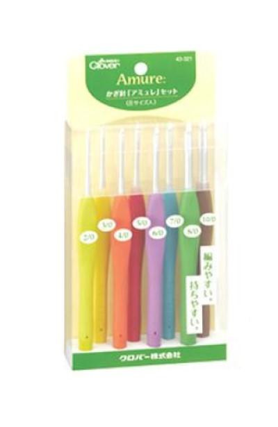 しっかり編める針先と、やさしい手ざわりで指にフィットする立体グリップ付きのかぎ針「アミュレ」のセットです。針先から糸がはずれにくく、目を拾ったり、糸を引き抜きやすい針先形状で、かぎ針の基本動作をかんたんに確実に行える工夫をしています。 |