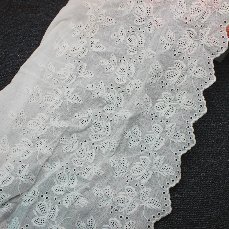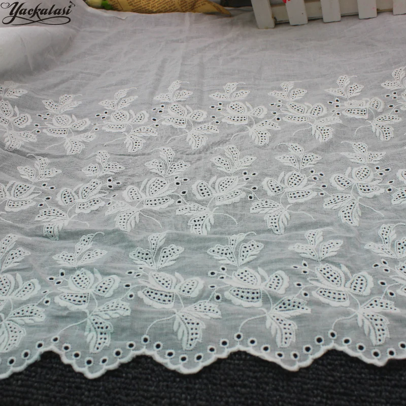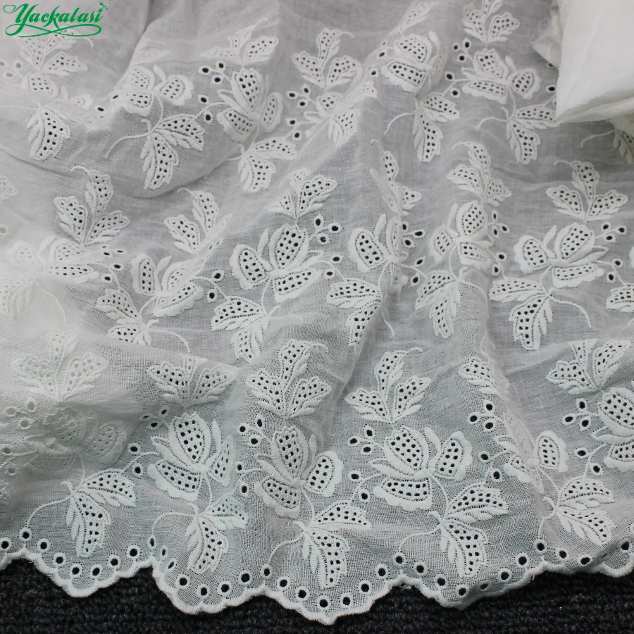 100% Cotton Lace Eyelet Embroidered Fabr:100% Cotton Lace Eyelet Embroidered Fabrics Appliqued 3D Flower Trims