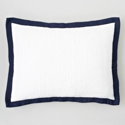 Oake Bedding Linen Collection Voile Pickstitch King Pillow Sham White/Navy