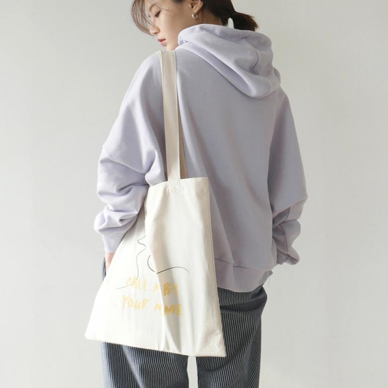 기하학적인 드로잉과 텍스트를 컴바인한 디자인이며 적당한 크기로 소지품의 실루엣에 따라 쉐입이 만들어집니다. 기본 탑과 빈티지한 데님 팬츠를 매치한 후 포인트로 들어주기 좋은 아이템입니다.