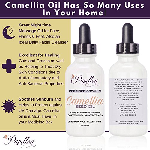 Benefits & Uses of Papillon Camellia Oil: -