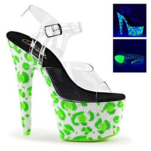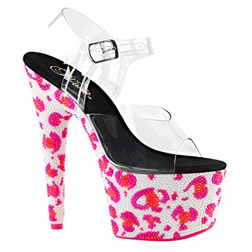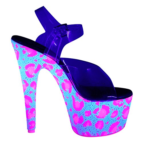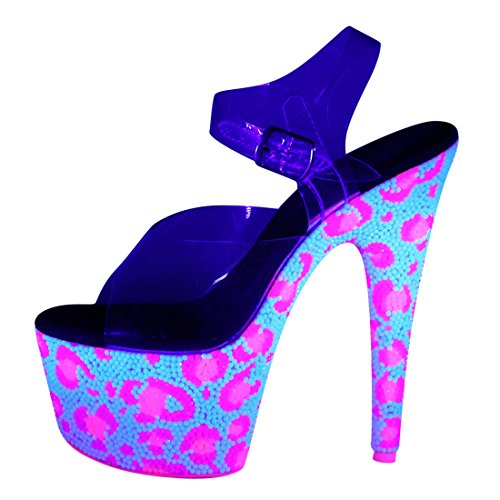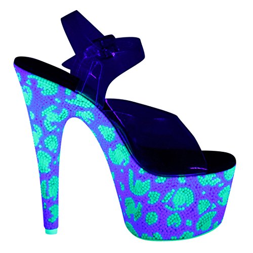 Product Description Sensuous. Sexy. Wild. No other adjectives are more fitted to describe the essence of the Pleaser brand of footwear and its extensive range of products. As the ultimate go-to name in sexy shoes, Pleaser has become the standard all others are judged by. This Bejeweled 708UVLP Ankle Strap Sandal feature clear ankle strap and vamp and blacklight sensitive RS covering entire platform bottom in leopard skin pattern blacklight sensitive outsole/toplift. Heel height: 7' (17.75cm). Platform height: 2 3/4' (7cm). Material: Synthetic. 0