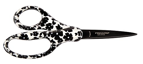 Fiskars 7 Inch Designer Non Stick Student Scissors, Black Floral