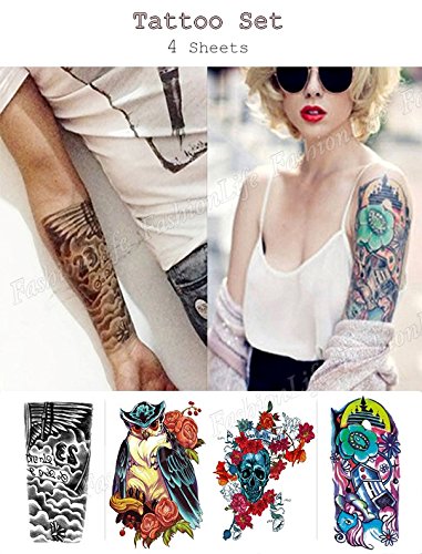 Temporary Tattoo Sticker set 4 Sheets 4 pcs Non-toxic Waterproof Removable Tattoo Set#054 Sticker Tattoo - FashionDancing