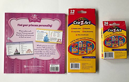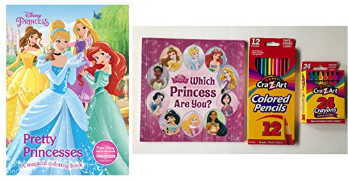 Studio : RLP Marketing LLC Publisher : RLP Marketing LLC Binding : Toy Product Description Every little girl's face will light up when she receives this Pretty Princesses (Disney Princess) kids' coloring book with Which Princess Are You Book PLUS 12 colored pencils and 24 Crayons..WOW! The coloring book is a popular best seller and features Ariel, Belle, Cinderella, and other princesses! Includes an online code for a free Disney digital storybook (contained within the coloring book). Also includes another book called Which Princess Are You that matches the reader's interests to those of Disney Princesses! Also included are a set of 12 Cra-Z-Art Coloring Pencils and a package of 24 Crayons. The colored are quality pencils that are pre-sharpened, long lasting and made of real wood. These colored pencils offer extra vivid colors to make coloring more fun and they are also easy to sharpen and contain thick smooth lead. Lastly, you get a pack of 24 Cra-Z-Art school quality crayons. This is perfect as a birthday or Christmas gift for any girl. And it instills creativity and imagination...much better than electronic devices, video games or TV!!! Get yours today and Have fun with your favorite Disney movie princesses and color in these amazing characters. 0