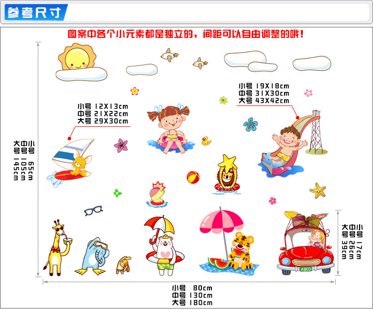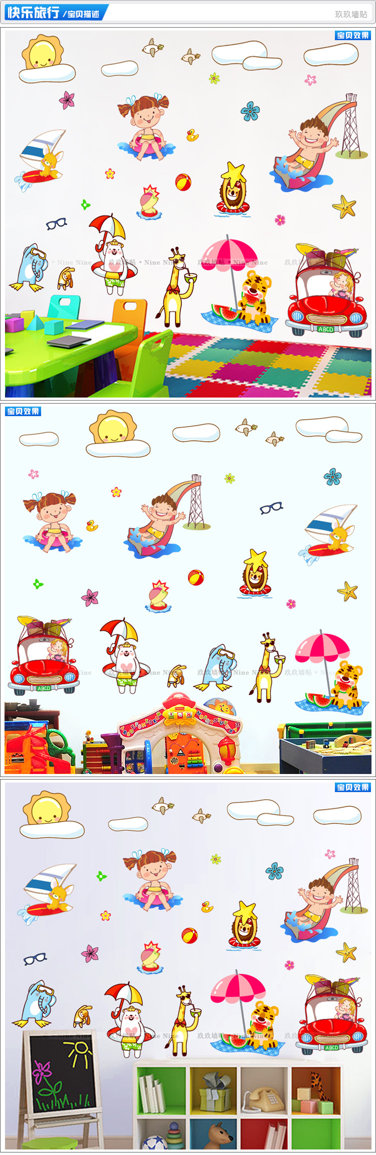 幼儿园儿童娱乐城游乐场装饰墙贴小朋友游泳旅行旅游休闲贴纸贴画
