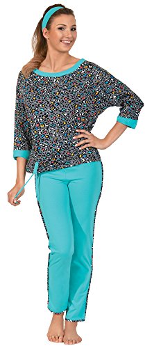 -. Binding : Textilien -. Brand : AVA lingerie -. Department : Damen -. Feature : Damen Pyjama; ¾ Ärmel; Lange Hose; Sehr komfortabel / Weit geschnittenes Oberteil in farbenfrohem Design; Dekoriert mit Bändern; Ausschnitt und Arm Enden umsäumt / Unifarbene Hose; Seitlicher Streifen und Beinenden farblich passend zum Oberteil; Stirnband im Lieferumfang enthalten / Flexible, atmungsaktive und sanfte Viskose / Hergestellt in der EU -. IsAdultProduct : 0 -. ProductGroup : Apparel -. ProductTypeName : SLEEPWEAR -. Title : AVA Damen Schlafanzug Fancy