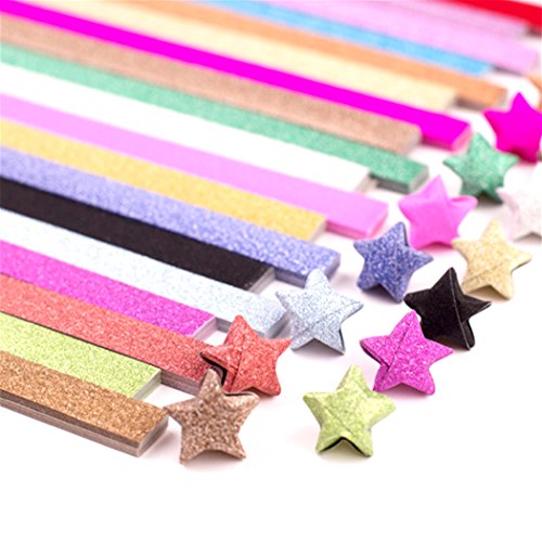 -. Feature : Size: 1*25cm. Quantity: 18 colors, each color has about 20 sheets. / Color: 18 cute colors with glittery powder, each color is packed with small bags / Works well for making stars, this is special gift for someone you love. / Thick and hard, and easy to fold.Great gift for anyone who enjoys doing this wonderful art form. / Perfect for schools and teachers, have great fun with your origami talents.