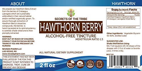 Hawthorn Berry Alcohol FREE Liquid Extract, Organic Hawthorn Berry (Crataegus Laevigata) Dried Berry Tincture Supplement (2 FL OZ)