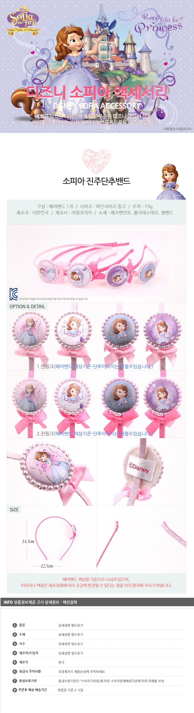 Princess Sofia Pearl Button Band Color Random Hair Headband Rubber Band Disney