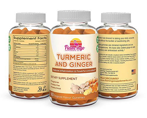 -. Title : Flamingo Supplements - Turmeric Curcumin & Ginger Chewable Gummies. Vegetarian, Kosher & Halal, Gluten Free, non GMO. 60 Count.