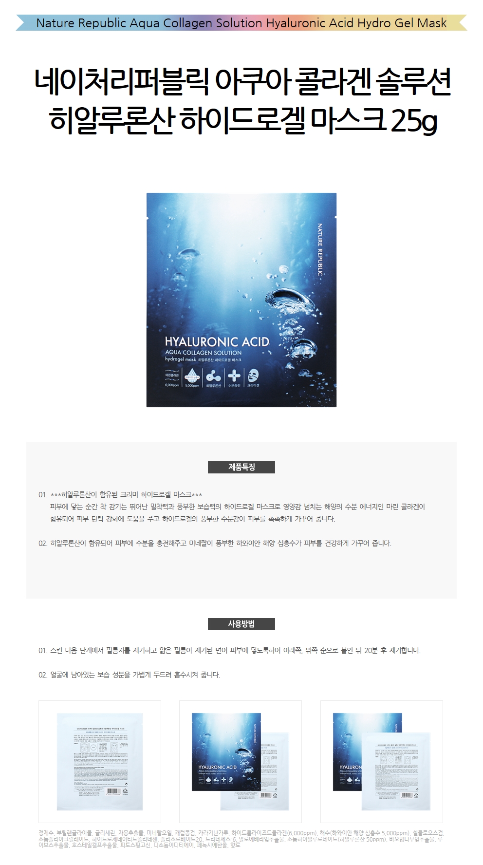 Hyaluronic Acid Pack Collagen Hydrogel Mask Sheet Face Pack Gel Pack Nature Protection