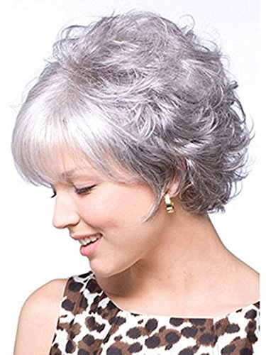 Deifor Women Short Curly Synthetic Hair New Fashion Style Cosplay Daily Wigs (Gray White)