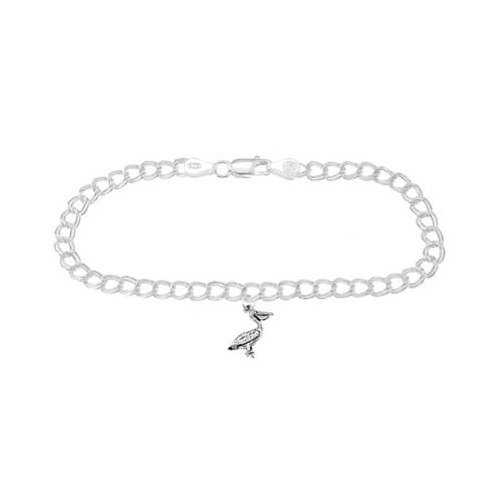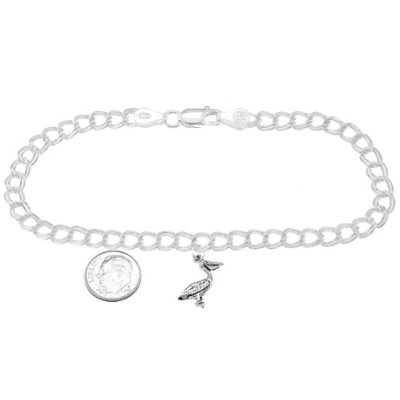 -. Title : Sterling Silver Pelican Bird on 4 Millimeter Charm Bracelet