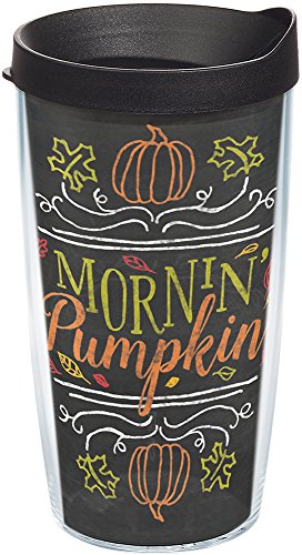 Good morning pumpkin. Enjoy a nice cup of your favorite seasonal beverage served in a fall-inspired tumbler sure to keep your drinks hot or cold longer.