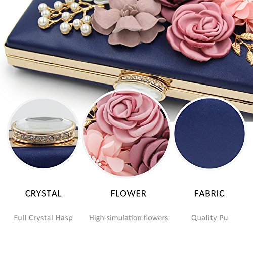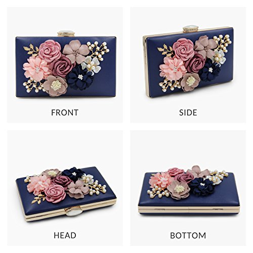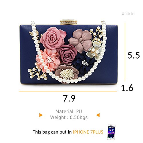 -. Feature : -STYLE-: PU Crystal Rhinestone Floral Clutch Bag With Metal Shoulder Chain(47 inches long Chain) / -MATERIALl-: Pearls Flower, Floral Metal Leaves, Rhinestones in PU Clutches. Whole clutch are Red PU Leather / CLOSURE: Hasp Diamond style Closure With Full Of Shinning Rhinestones. / DIMENSION : It fits in IPhone7, Cash, Lipstick, Small Cosmetics, Keys. / OCCASION: Wedding, Party, Cocktail Ceremony, Daily, Dating