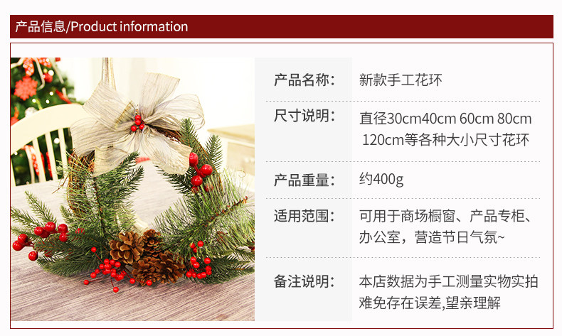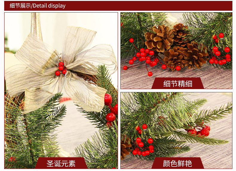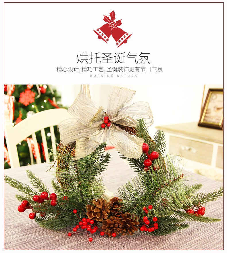 莘蝶 手工小号创意圣诞花环25cm前台餐厅酒店圣诞树装饰品藤条