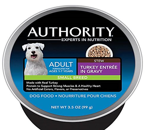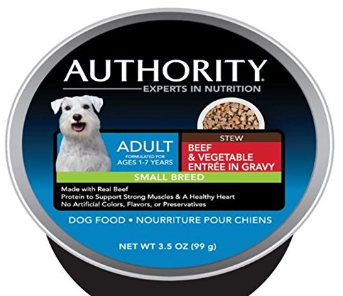 Authority small breed adult dog food provides proper nutrition for small breed dog at each and every meal. The delicious stew was created specifically to provide complete and balanced nutrition for small breed dogs for their continued good health.Feature