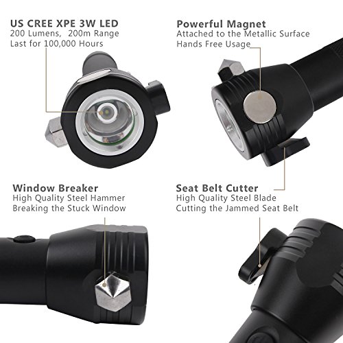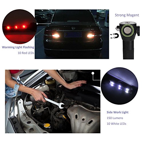 Reliable and Necessary: Flashlight is water & shock resistant for use under the most rugged, emergency condition.It comes with a weather resistant anodized aluminum alloy body, easy to grip, tail with a compass for outdoors; Not just for auto emergencies, also great for working, camping, or hiking