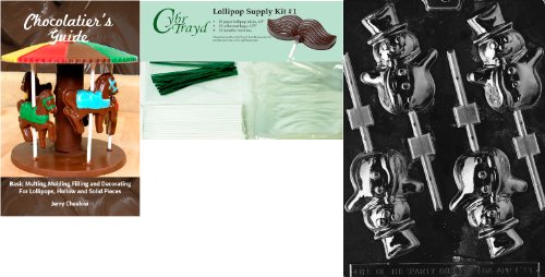 Cybrtrayd 45stK25GRBk-C086 Snowman Lolly Chocolate Mold with Chocolatier's Bundle of 25 Lollipop Sticks, 25 Cello Bags, 25 Green Twist Ties and Chocolatier's Guide
